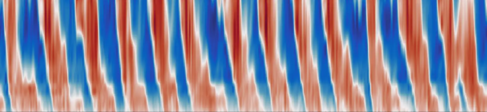 The quasi-biennial oscillation. In this case, counter-propagating gravity waves emitted at the tropopause interact with the mean flow in the stratosphere to create a periodic reversal of the zonal wind. The period of this phenomenon is not directly fixed by a forcing mechanism, but emerges from the internal dynamics of the system. In fact, the dynamics of the quasi-biennial oscillation is more complex than simple periodic oscillations, and one of our goals is to understand this complexity in idealized models.